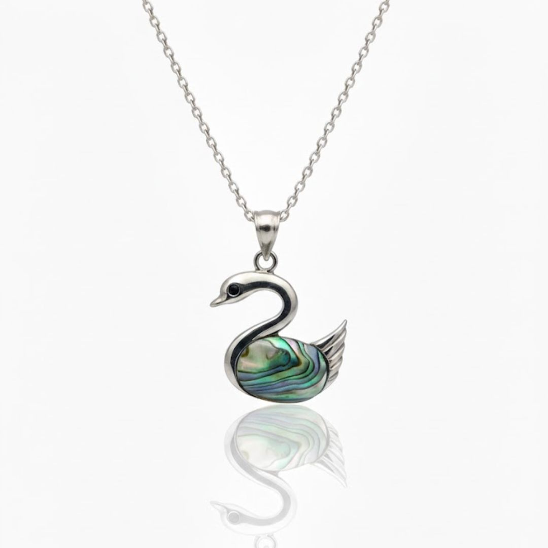 Majestic Swan Pendant with Dark Mother of Pearl Inlay