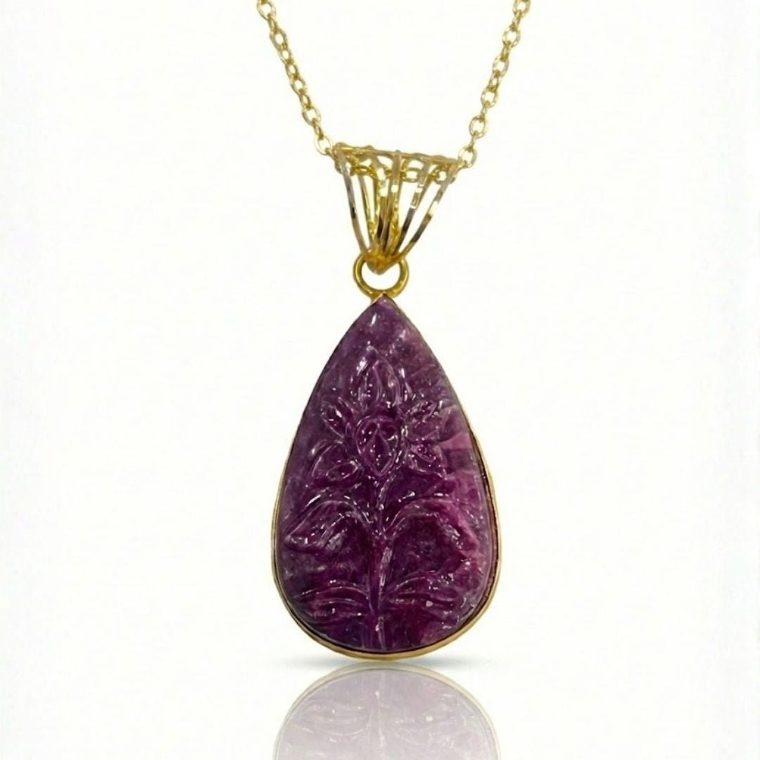 Carved Ruby Pear - Cut Pendant