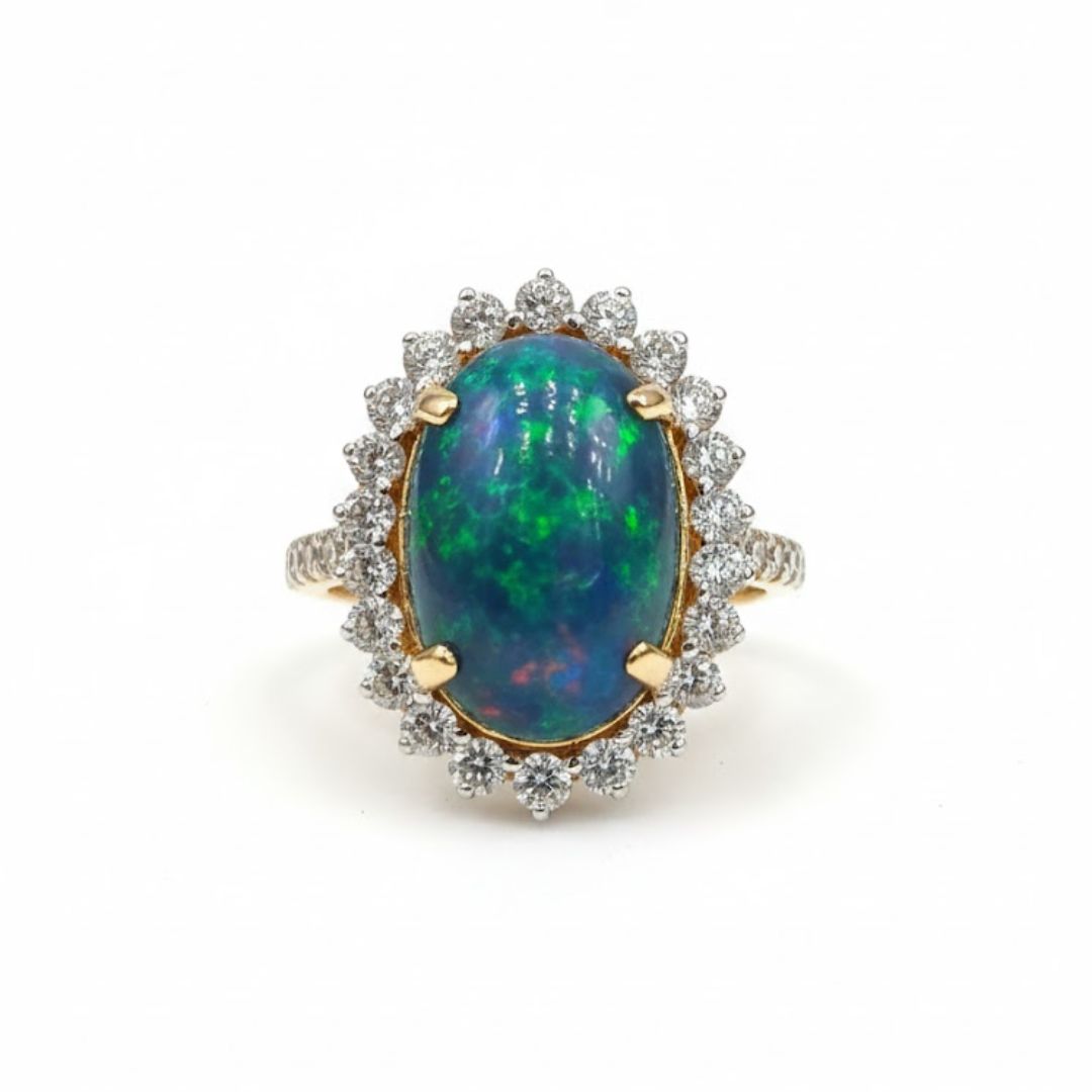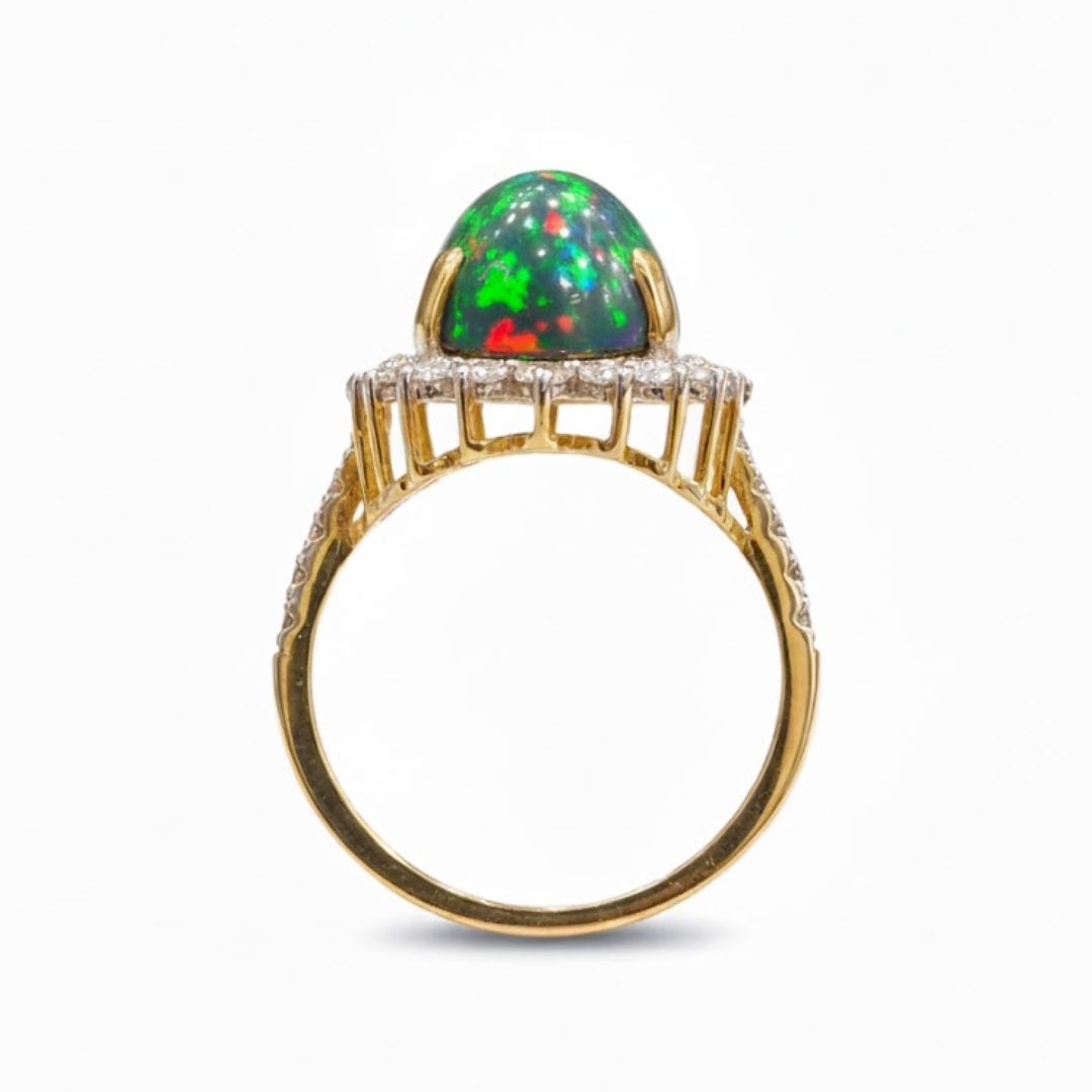 Oval Green Opal Halo Ring with Diamond Accents